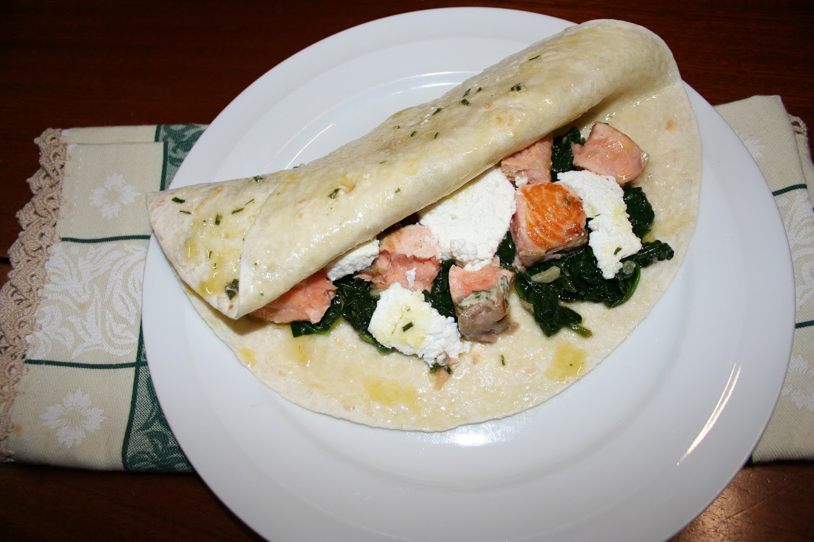 Porque é que faço sempre piadina em vez de Wraps? É simples: para poupar tempo. As piadinhas são fatias de pão-folha, tipicamente italiano, que os romanos terão aprendido a fazer no Oriente. São uma espécie de cruzamento entre as tortilhas e os wrap e não é necessário enrolar. Quando não tenho tempo de fazer esta massa de pão, que é muito fácil mas nem sempre há tempo, compro tortilhas. Foi o caso de hoje. Como uma embalagem trás 6 folhas e só eramos 3, voltarei a fazer amanhã, substituindo o salmão por presunto.