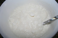 - Num tachinho coloquei o leite e a maizena; mexi até a farinha se diluir. Acrescentei o mel e o coco hidratado e levei ao lume a engrossar, em lume brando e mexendo para não agarrar.