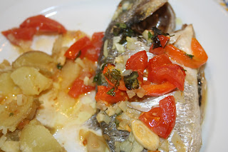 Há imenso tempo que não fazia e simplesmente adoro dourada assada no forno! O meu tempero é quase sempre este, muito simples mas de inigualável sabor, faz-se num instante e fica tudo pronto noutro. Tão bom...