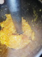 2. Passei para um copo alto e triturei com a varinha magica (podem usar processador de alimentos ou liquidificador). Reservei para arrefecer por completo.